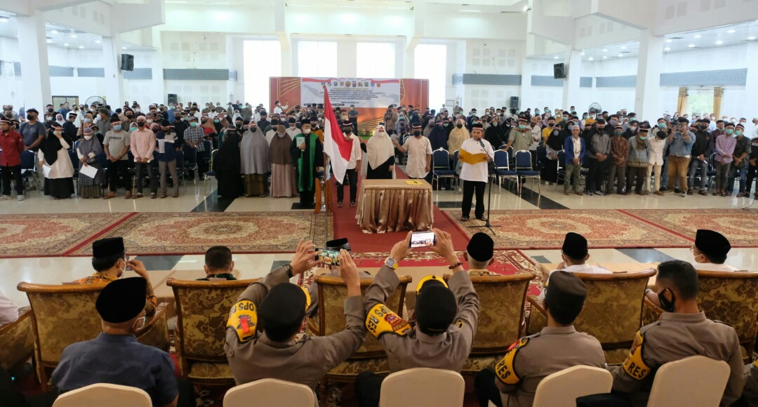 IWOSUMBAR.COM, PADANG – Sebanyak 518 orang yang tergabung dalam kelompok Negara Islam Indonesia (NII), hari ini kembali melakukan cabut ba’iat untuk kembali ke Negara Kesatuan Republik Indonesia (NKRI) di gedung Maharajo Dirajo, Batusangkar, Tanah Datar, Jumat (29/4)