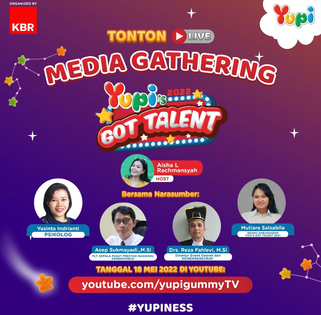 Yupi’s Got Talent 2022 adalah event atau wadah yang memberikan kesempatan bagi anak-anak dan remaja Indonesia untuk berkreativitas. Kegiatan semacam ini akan mengarahkan generasi muda –yang cenderung tergantung pada ‘kegiatan digital’ semata– menjadi lebih produktif dengan memanfaatkan media digital untuk berkreasi.