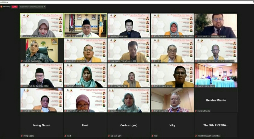 Iwosumbar.com, Padang– Fakultas Ekonomi Universitas Negeri Padang (UNP) pada tanggal 21 Mei 2022 kembali sukses menyelenggarakan Seminar Internasional bertajuk 9th Padang International Conference on Economics, Education, Business and Accounting (8th PICEEBA).