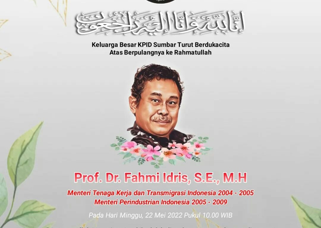 Iwosumbar.com, Padang – Mantan Menteri Perindustrian Fahmi Idris, telah berpulang. Mengembuskan nafas terakhir di ICU Rumah Sakit Medistra, Jakarta, Ahad pukul 10.00 WIB (22/5). Wakil Gubernur Sumatera Barat, Audy Joinaldy mengunjungi rumah duka keluarga Almarhum di Mampang Prapatan, Jakarta Selatan.