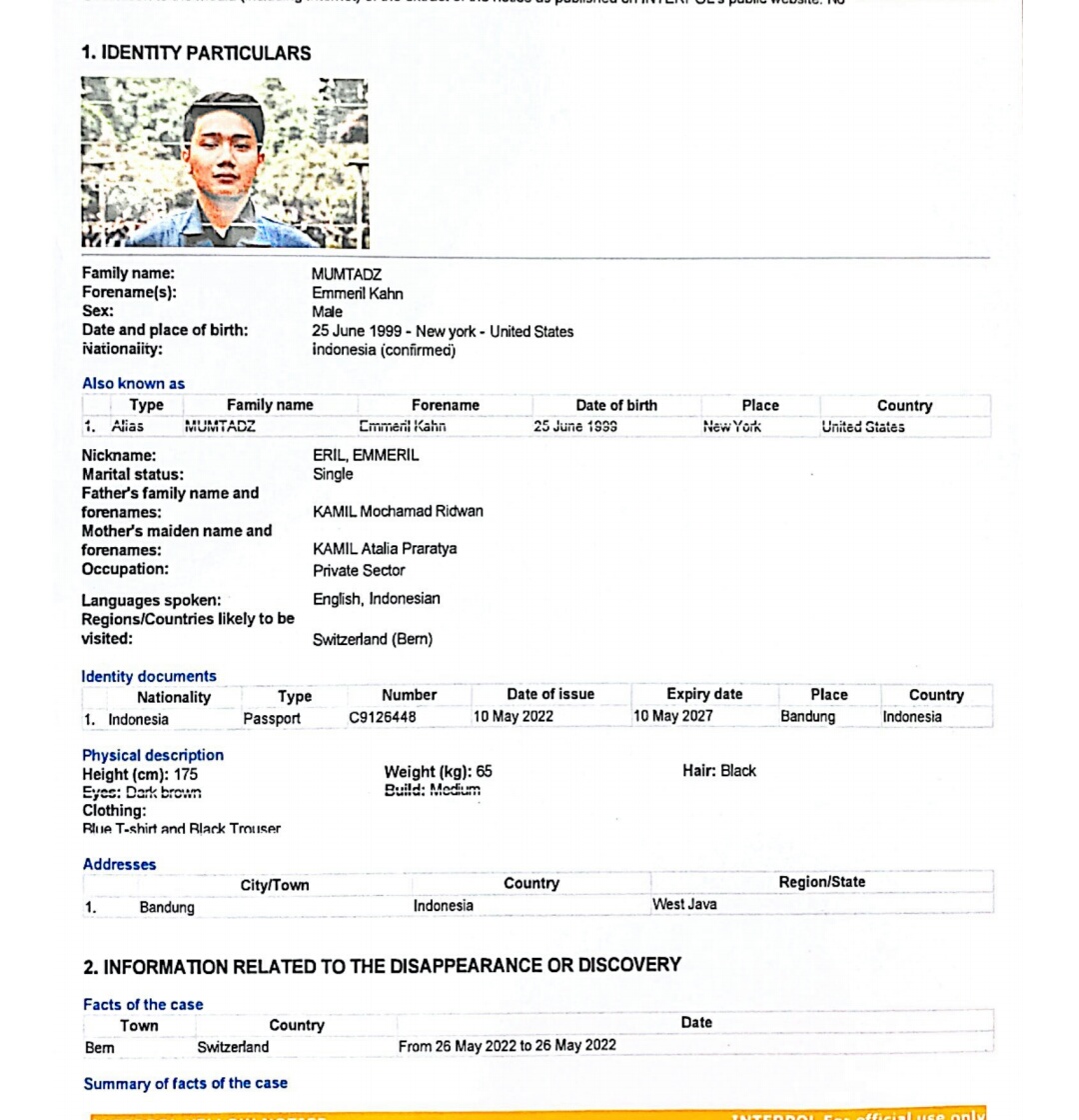 Dedi menjelaskan, dengan terbitnya Yellow Notice tersebut, seluruh negara yang menjadi anggota Interpol telah menerima informasi kehilangan anak dari Ridwan Kamil tersebut.