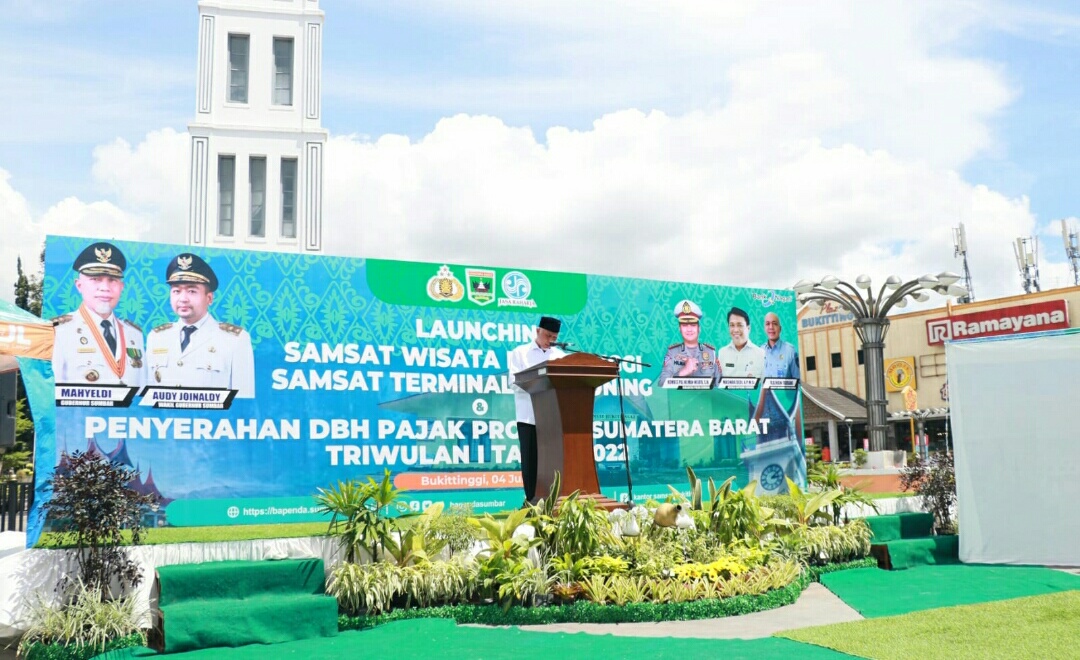 Iwosumbar.com, Padang – Gubernur Sumatera Barat Mahyeldi Ansharullah didaulat melaunching Samsat Wisata dan Samsat Terminal serta Penyerahan Dana Bagi Hasil (DBH) Pajak Provinsi Triwulan I Tahun 2022.