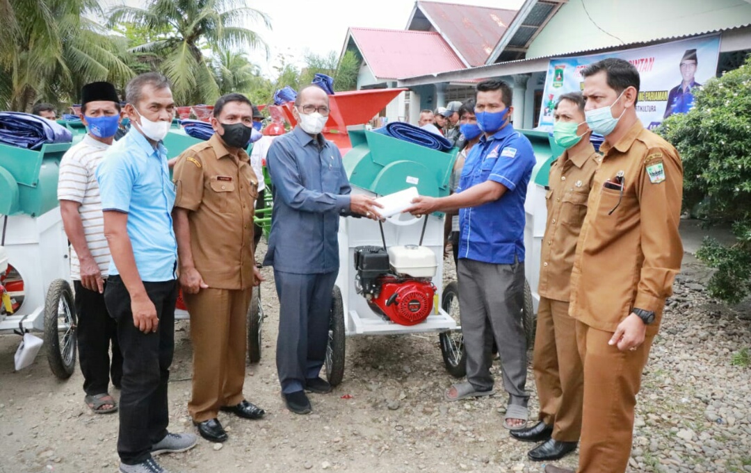Bantuan 40 unit perontok padi diserahkan pada 36 kelompok tani,dan 18 alat perontok jagung untuk 18 kelompok tani, yang tersebar di 2 kecamatan yakni Lubuk Alung dan Batang Anai, serta berasal dari 6 Nagari. (fwp-sb)