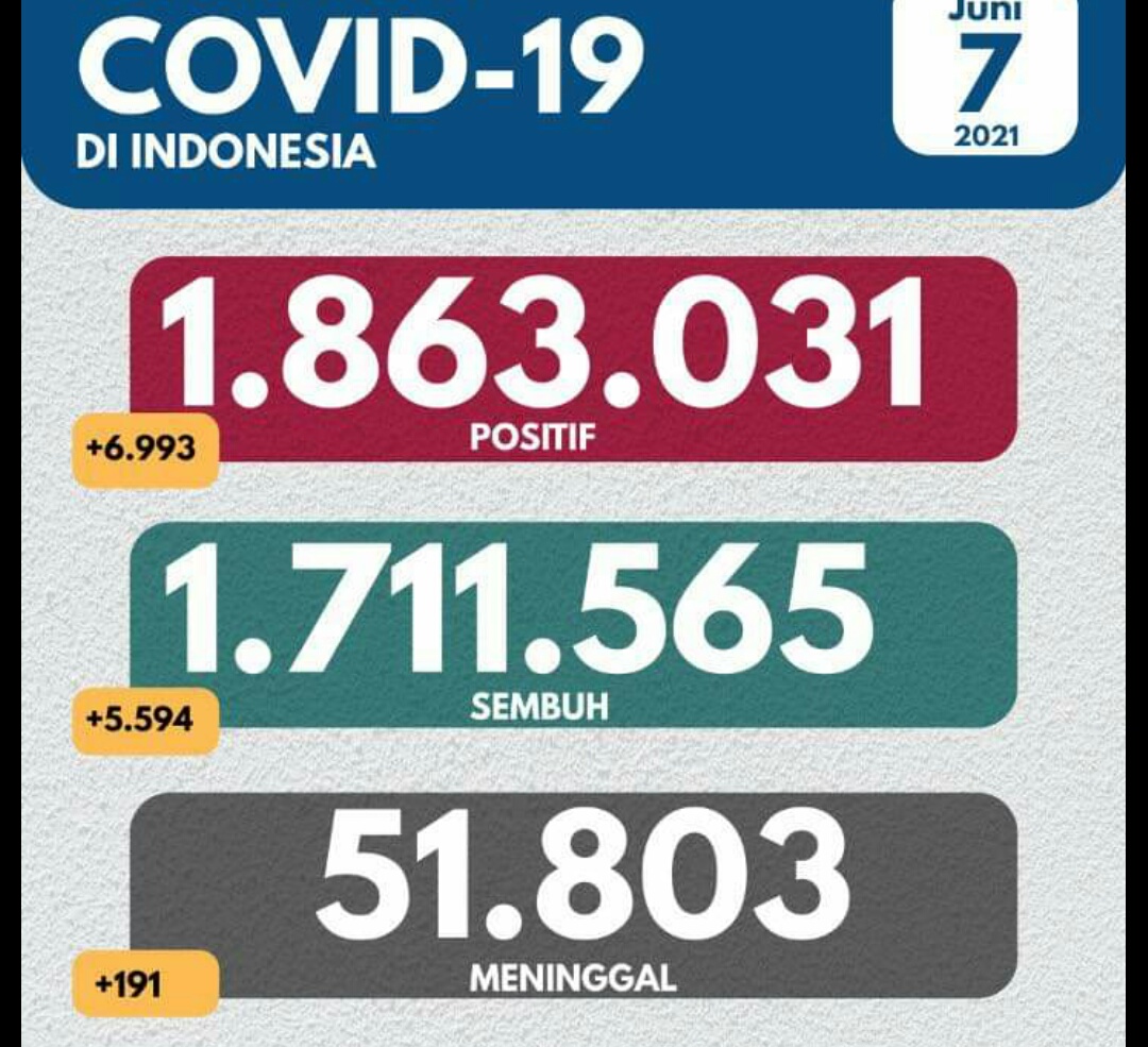 IWOSUMBAR.COM, JAKARTA – Perkembangan penanganan pandemi Covid-19 per 7 Mei 2021 tercatat pertambahan pasien sembuh hari ini sebanyak 5.594 kasus