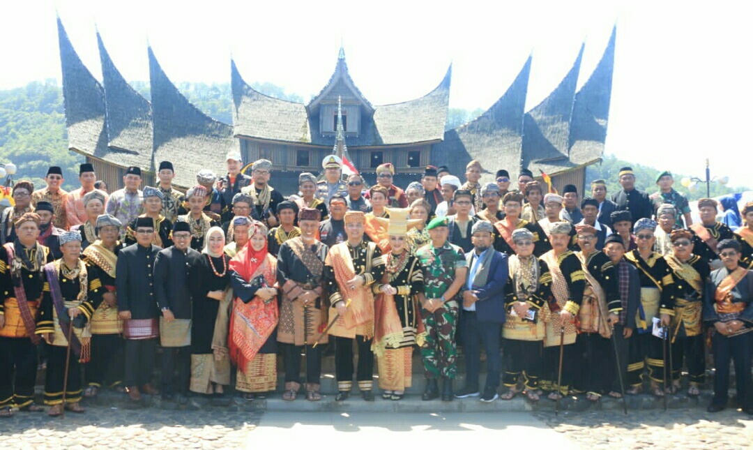 Iwosumbar.com, Padang – Usai menyerahkan 7 benda pusaka raja-raja Minangkabau, kembalikan kepada pemilik yang sah yaitu kerajaan Pagaruyung. Kapolda Sumbar Irjen Pol Teddy Minahasa P, SH. S.Ik. MH beserta istri melewakan gelar adat di Istano Basa Pagaruyung, Batusangkar, Tanah Datar, Jumat (1/7/2022 ).