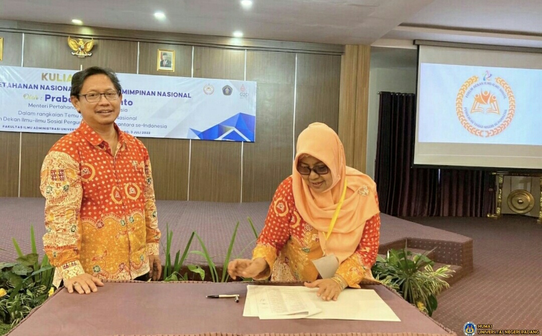 Iwosumbar.com, Padang -Dekan Fakultas Ilmu Sosial (FIS) Universitas Negeri Padang (UNP) bersama Dekan FIS/ IS se-Indonesia melakukan penandatanganan MoU (Nota Kesepahaman) serta diskusi mengenai rencana strategi pencapaian Indeks Kinerja Utama (IKU), Merdeka Belajar Kampus Merdeka (MBKM), dan QS 100 dalam Rapat Kerja Forum Dekan Fakultas Ilmu Sosial dan Ilmu Sosial (FORDEKIS), di Malang, 1-4 Juli 2022.