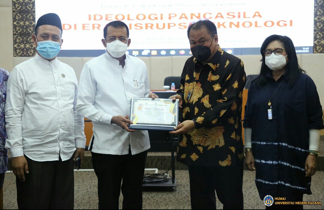 Rektor UNP Prof. Ganefri, Ph.D dalam sambutan menyatakan ” Pancasila tidak bisa kita perdebatkan lagi sebagai ideologi bangsa, tetapi yang penting bagaimana membumikan Pancasila dan menginternalisasikannya dalam kehidupan sehari-hari dan kebangsaan, sehingga menjadi kekuatan bagi kita semua.