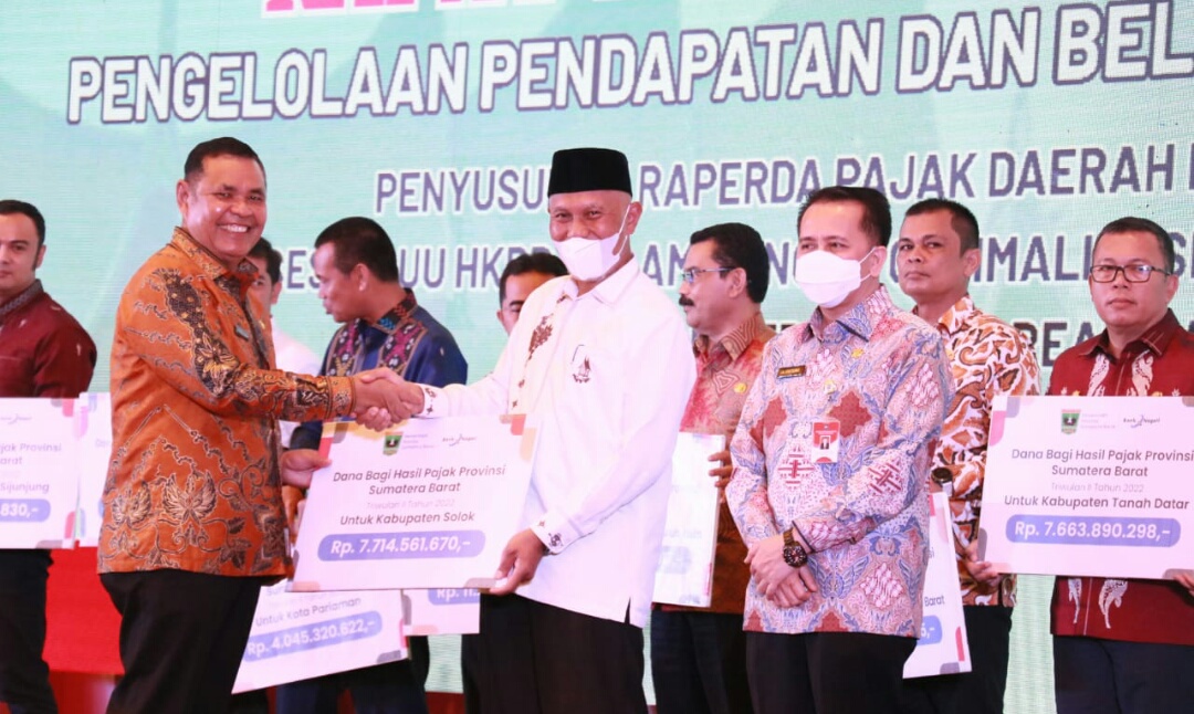 Iwosumbar.com, Padang – Gubernur bersama walikota dan bupati beserta jajajan Forkopimda se-Sumbar, mengikuti Rapat Koordinasi Nasional Pendapatan Belanja Daerah Tahun 2022 serta Penyerahan Dana Bagi Hasil Pajak Provinsi Sumatera Barat yang diserahkan ke seluruh bupati/walikota se-Sumbar di The ZHM Premiere Padang, Jumat (12/8/2022).