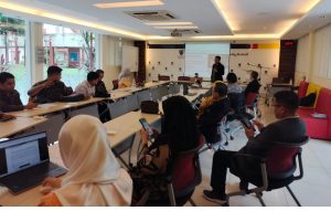 Kuliah ini dilaksanakan dengan metode blended, dengan mahasiswa mengikuti sesi secara daring melalui Zoom, sementara Dr. Sandi mempresentasikan materinya dari Cube Room Meeting Blok A, Fakulti Teknologi Pendidikan Universiti Malaya.