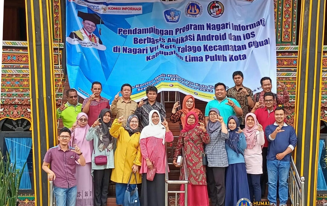 Untuk merealisasikan tujuan ini UNP melakukan Program Pengabdian Masyarakat (PPM) bertema ” Pendampingan Program Nagari Informatif Berbasis Android dan Ios”. Kegiatan ini digelar di Aula Kantor Walinagari VII Koto Talago, Minggu 11 September 2022.