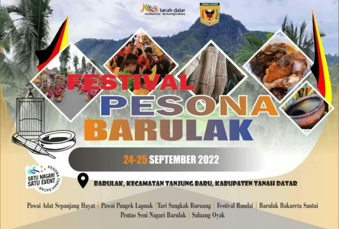 IWOSUMBAR.COM, TANAH DATAR – Untuk menyukseskan Program Satu Nagari Satu Event yang dicanangkan oleh Pemerintah Kabupaten Tanah Datar, Nagari Barulak akan menggelar event bertajuk Festival Pesona Barulak. Festival tersebut akan dilaksanakan pada 24 – 26 September 2022 di Nagari Barulak, Kecamatan Tanjung Baru, Tanah Datar, Sumatera Barat.