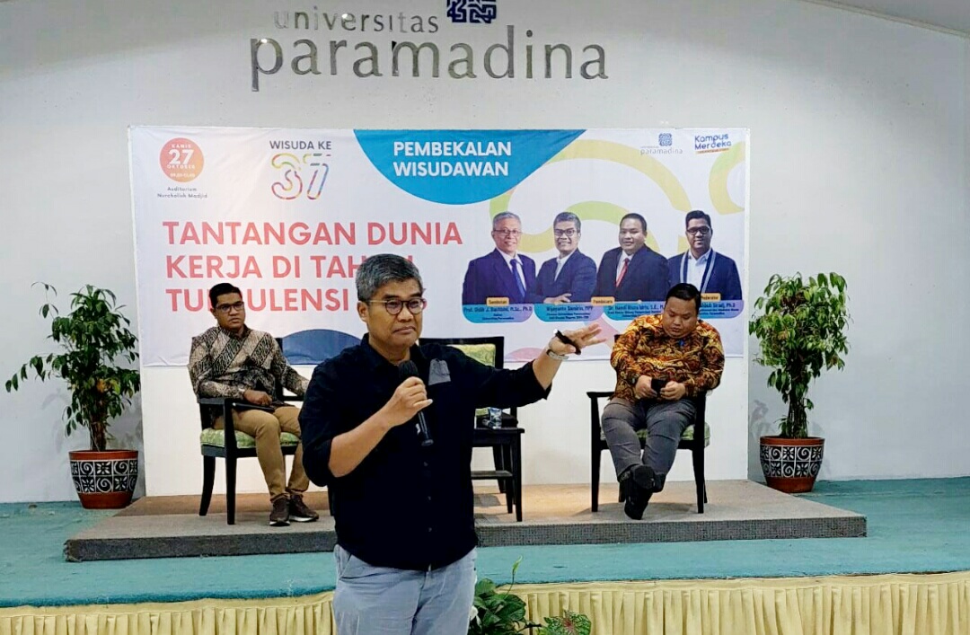 Dalam acara yang dibuka Rektor Prof Dr. Didik J. Rachbini ini, hadir sebagai narasumber yaitu Wijayanto Samirin, MPP dosen Universitas Paramadina, dan Handi Risza wakil rektor Universitas Paramadina dan dimoderatori Fuad Mahbub Siraj, Ph.D, Direktur Kemahasiswaan dan Inkubator Bisnis. Acara ini digelar dalam rangka pembekalan Wisuda Sarjana dan Magister ke-37 Universitas Paramadina.