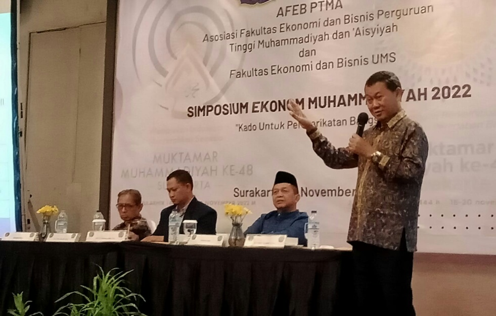 “Yang harus kita wujudkan adalah persemakmuran Muhammadiyah,” kata Heppy Trenggono saat menjadi pembicara dalam Simposium Ekonomi Muhammadiyah 2022 bertema “Kado untuk Persyarikatan Bangsa” yang digelar Asosiasi Fakultas Ekonomi dan Bisnis Perguruan Tinggi dan ‘Aisyiyah (AFEB PTMA) dan Fakultas Ekonomi dan Bisnis UMS dalam rangka Muktamar Muhammadiyah Ke 48 yang digelar di Surakarta Jumat 18 November 2022.