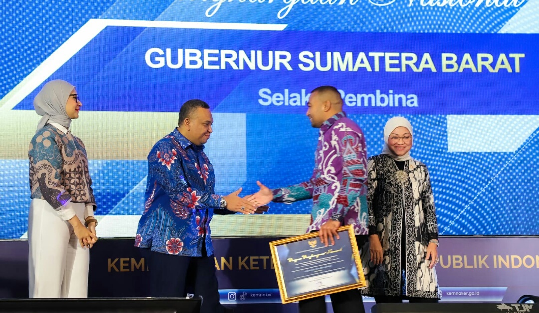 Anugerah penghargaan diberikan oleh Menteri Tenaga Kerja Ida Fauziah kepada Wagub Sumbar Audy Joinaldy dalam acara bertajuk “Pemberian Penghargaan Nasional Kepada Perusahaan dan Badan Usaha Milik Negara (BUMN) yang Mempekerjakan Penyandang Disabilitas Tahun 2022” di Jakarta, Senin (21/11).