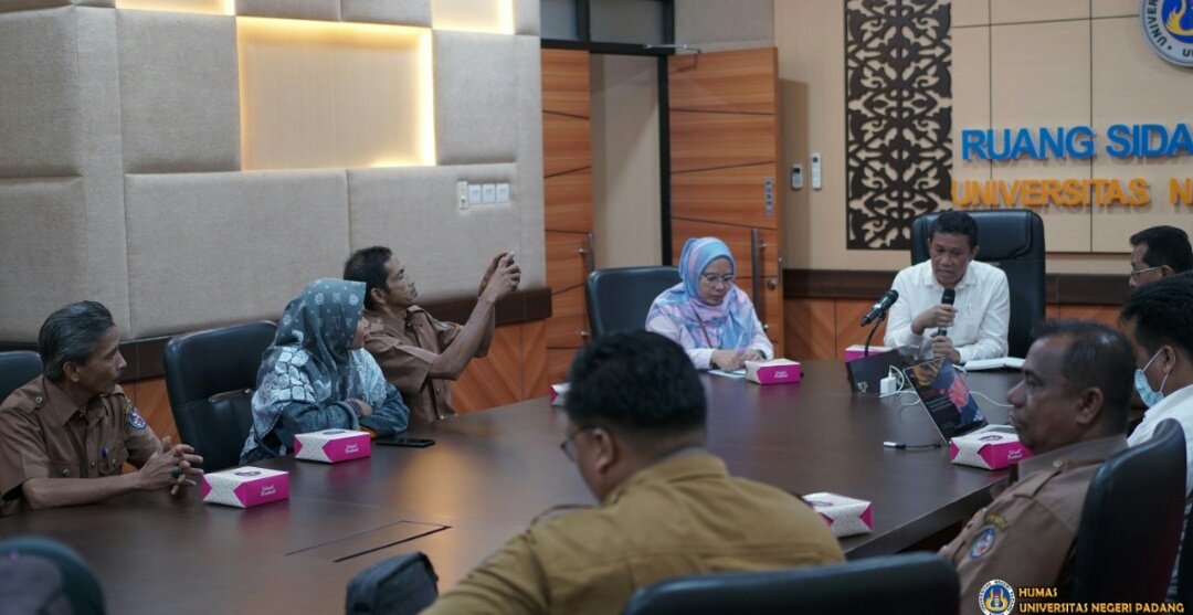 Rombongan diterima di ruang sidang Rektor lantai 4 gedung rektorat disambut Sekretaris Universitas Dr. Erianjoni, S.Sos., M.Si, dan juga Tim Pengabdian Masyarakat terdiri dari Ketua Jurusan Elektronika Fakultas Teknik UNP Ahmaddul Hadi, S.Pd., M.Kom, Kepala Kantor Hukum & Organisasi Mira Hasti Hasmira, SH., M.Si dan juga beberapa orang anggota Biro Humas & Kerjasama.
