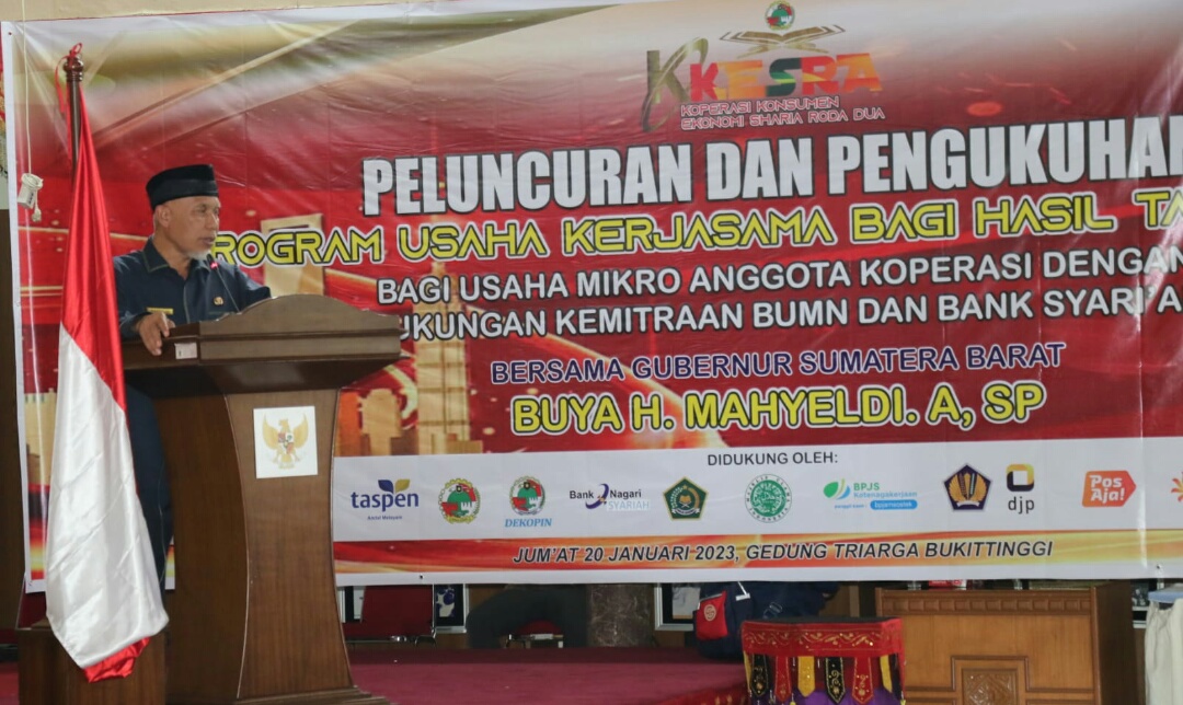 Iwosumbar.com, Padang – Gubernur Mahyeldi luncurkan Program Koperasi Konsumen (KOKESRA) Ekonomi Syariah Roda Dua dan Perlindungan Pekerja Rentan BPJS Ketenagakerjaan Tahun 2023 di Istana Bung Hatta Bukittinggi, Jumat (20/1).
