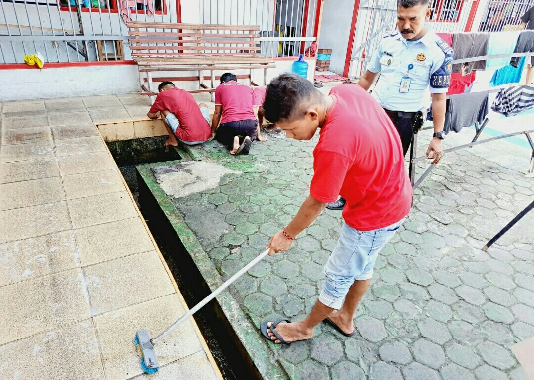 “Kerja bakti yang dilakukan pada pagi ini berfokus pada area depan kamar hunian serta area sekitar lapangan olahraga. Tujuan dilaksanakan kebersihan untuk menciptakan lingkungan yang bersih, asri dan suasana yang nyaman”