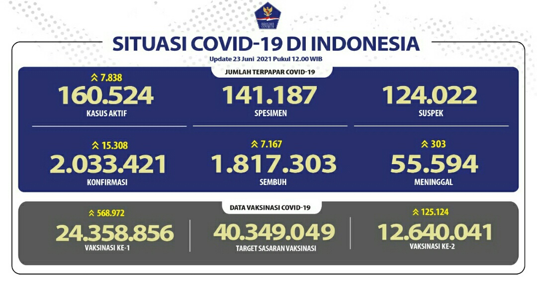 Adapun kasus penambahan positif juga bertambah berjumlah sebanyak 15.308 orang. Sehingga total kasus positif telah berjumlah sebanyak 2.033. 421 kasus.