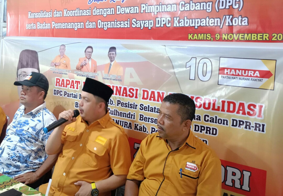 Penegasan itu disampaikan Ketua DPD Hanura Sumbar, Febby Dt. Bangso, Kamis (9/11/2023) ketika menyambangi sekretariat DPC Hanura Kabupaten Pesisir Selatan dalam rangka road show dan pemantapan pemenangan Hanura pada pemilu 2024.