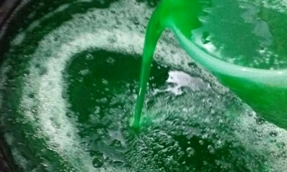 Campuran terus diaduk sampai semua tercampur rata dan tambahkan air sampai 15L. Tambahkan pewangi jika diinginkan.