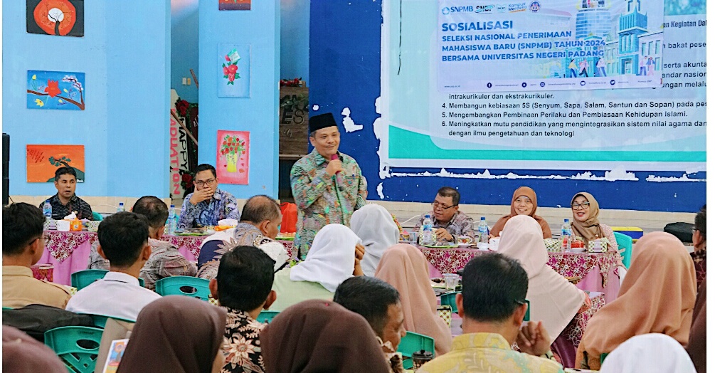 Sosialisasi merupakan bagian dari rangkaian roadshow SNPMB 2024 di delapan Cabdin di Sumatera Barat yang diselenggarakan oleh Universitas Negeri Padang (UNP) dan dibuka oleh Wakil Rektor I, Dr. Refnaldi, S.Pd, M.Litt, serta Kasi SMA Cabdin VII, Hilma Novialira, S.Pd.