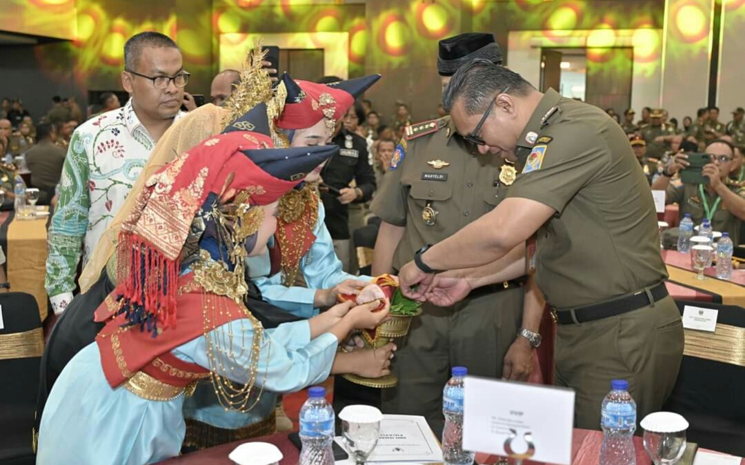 Gubernur Mahyeldi sambutannya menyampaikan apresiasi atas kontribusi Satpol PP dan Satlinmas di seluruh Indonesia dalam menjaga ketertiban umum (Trantibum).