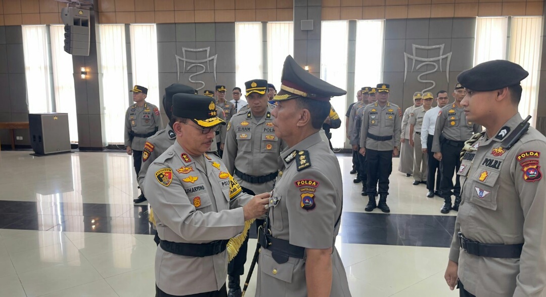 Upacara sertijab ini ditandai dengan penanggalan dan pemasangan tanda jabatan yang dilakukan oleh Kapolda Sumbar.