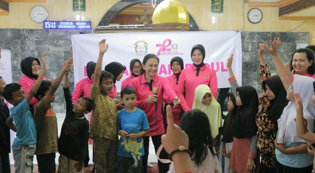 (Ketua Bhayangkari Juliati Hibur Anak Korban Lahar Dingin)