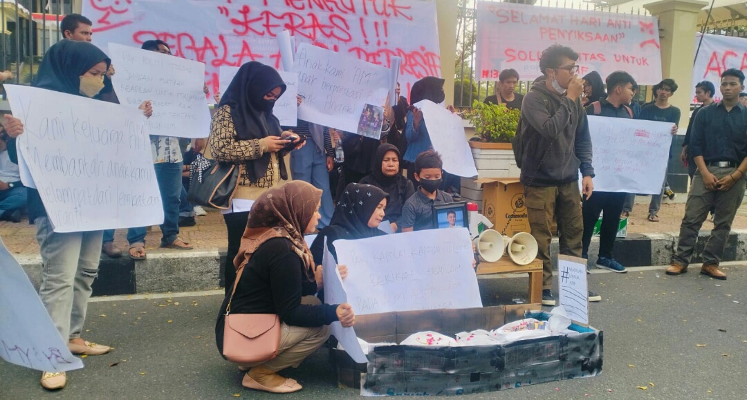 Unjuk rasa yang digelar oleh Jaringan Pembela HAM Sumbar, LBH Padang, serta puluhan mahasiswa tersebut mendesak Kapolda Sumbar untuk turun langsung menemui keluarga korban.