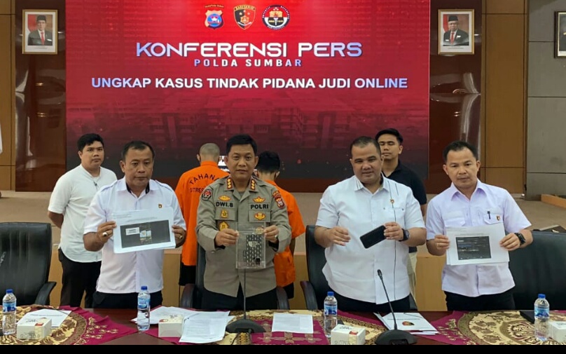 (Ket Poto: Konferensi Pers Judi Online di Mapolda Sumbar)