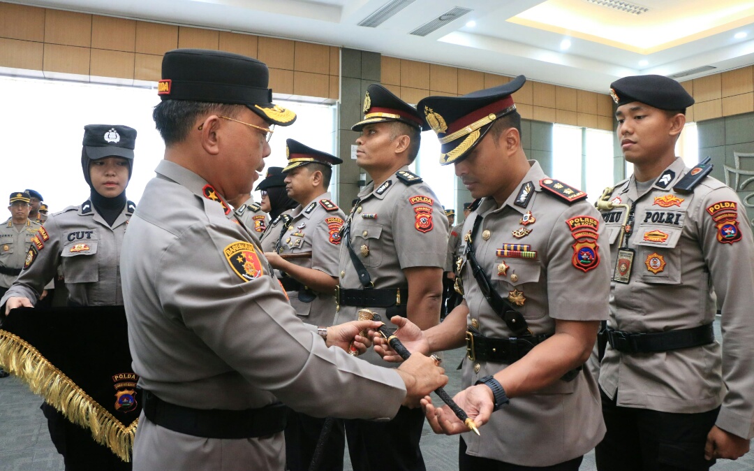 Upacara berlangsung di ruang pertemuan Jenderal Polisi Hoegeng lantai 4 dan ditandai dengan penyerahan tongkat komando serta penanggalan dan pemasangan tanda jabatan oleh Kapolda Sumbar.