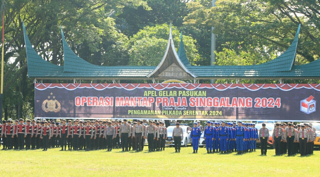 “Apel gelar pasukan ini bertujuan untuk memastikan kesiapsiagaan dalam pengamanan Pilkada serentak tahun 2024 di Sumatera Barat secara sinergis.” tegas Kapolda.