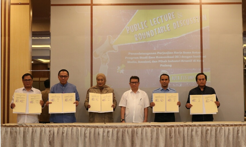 IWOSUMBAR.COM, PADANG -Program Studi (Prodi) Ilmu Komunikasi Departemen Sosiologi Universitas Negeri Padang (UNP) menandatangani nota kesepahaman dengan 13 media dan industri kreatif di Kota Padang pada Selasa (10/9).