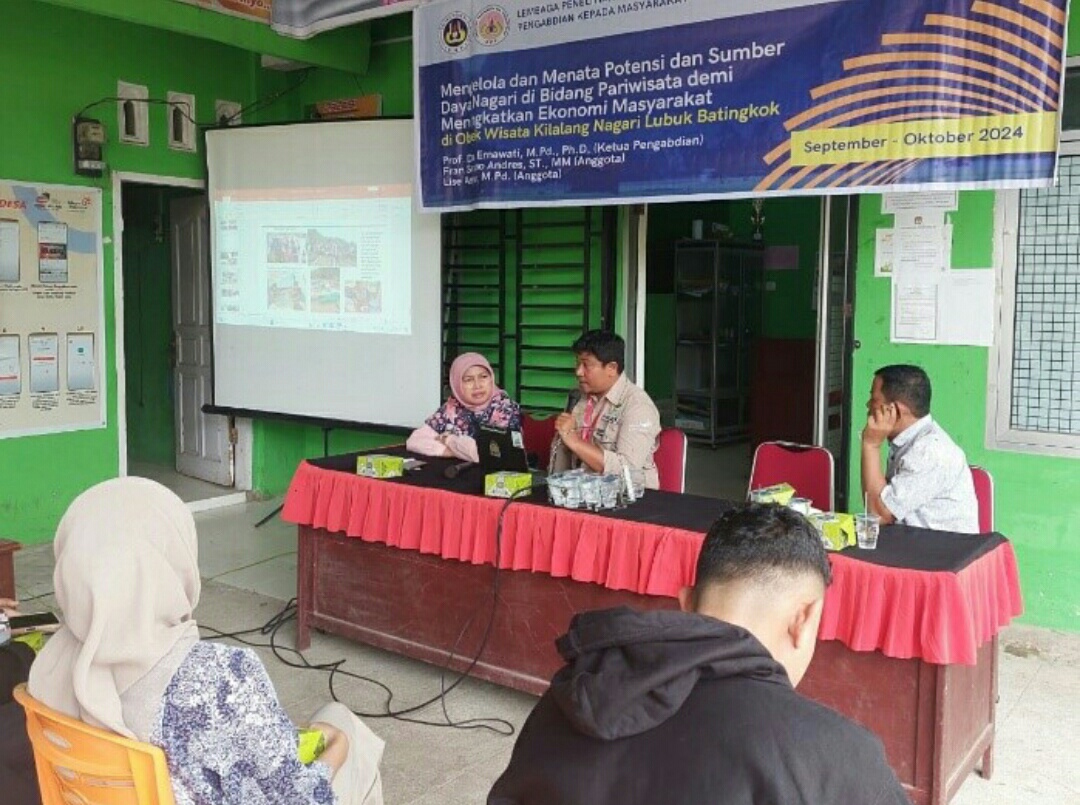 IWOSUMBAR.COM, PADANG- Pariwisata dan Perhotelan, Universitas Negeri Padang (UNP) melaksanakan program pengabdian masyarakat di Nagari Lubuak Batingkok, Kecamatan Harau, Kabupaten Lima Puluh Kota.