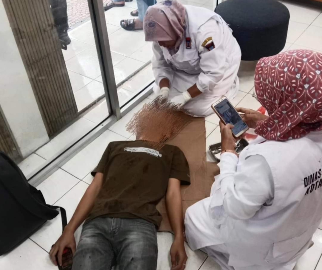 Salah satu korban, seorang pria pejalan kaki, mengalami luka robek di bagian kepala akibat lemparan batu. Dan korban langsung mendapatkan penanganan medis dari Dinas Kesehatan Kota Padang yang berada di Pos Pam Nataru.