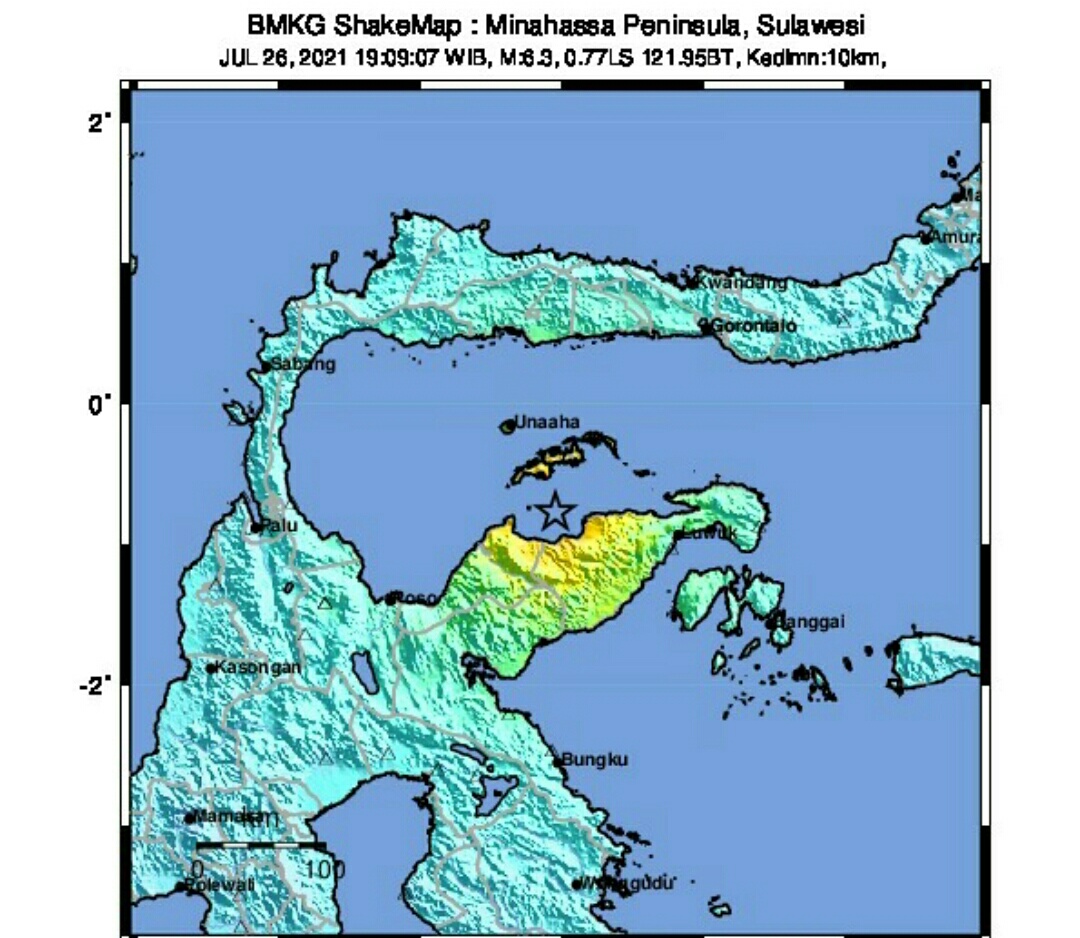 IWOSUMBAR.COM, JAKARTA – Sejumlah wilayah di Provinsi Sulawesi Tengah merasakan guncangan kuat akibat gempa M6,5. Pusat gempa tersebut berada 59 km timur laut Tojo Una Una dan berkedalaman 10 km.