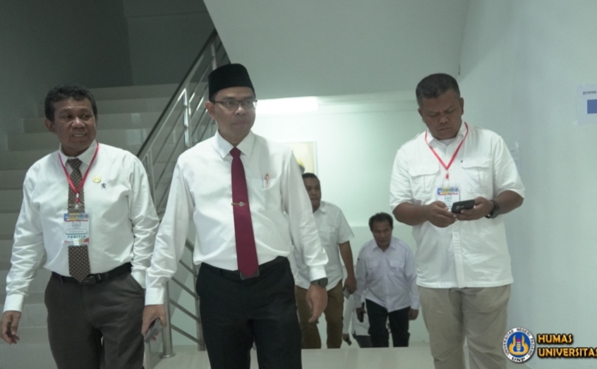 IWOSUMBAR.COM, PADANG- Rektor Universitas Negeri Padang (UNP), Krismadinata, Ph.D., monitoring dan evaluasi (monev) pelaksanaan Ujian Tulis Berbasis Komputer (UTBK) 2025 di kampus UNP, Senin (28/4/2025).