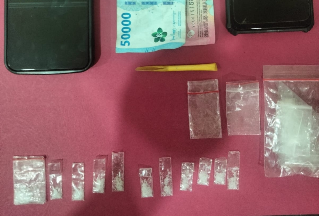 Dikatakan bahwa penangkapan berawal dari laporan masyarakat. Dalam penggeledahan, petugas menemukan sejumlah barang bukti, antara lain:3 plastik klip berisi kristal bening diduga sabu, dikemas dalam 11 paket kecil siap edar. Uang tunai sebesar Rp150.000.