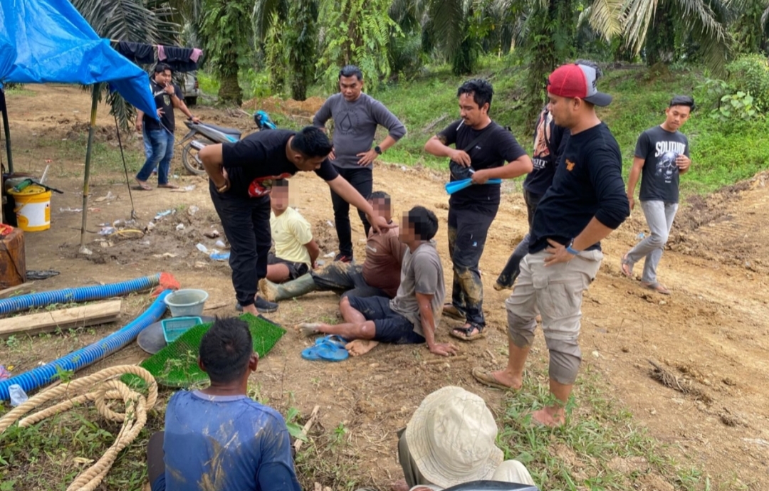 Dalam operasinya petugas berhasil mengamankan tiga pelaku berinisial AD (31), AR (22), dan ZH (45). Dua pelaku pertama berperan sebagai anggota box, sementara ZH bertugas sebagai operator alat berat Excavator Caterpillar 320 GX berwarna kuning.