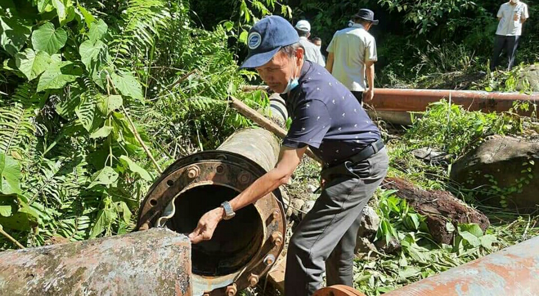 Dikesempatan itu Dewas menyaksikan langsung pekerja bersitungkin melakukan perbaikan pipa transmisi yang ikut terbawa arus banjir bandang.