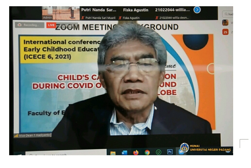 Iwosumbar.com, Padang- International conference of Early Childhood Education (ICECE 6, 2021) dengan Tema “Child’s care and stimulation during covid our break around the Globe” secara resmi dibuka oleh Rektor Universitas Negeri Padang (UNP) yang diwakili oleh Wakil Rektor I UNP, Dr. Refnaldi. M.Litt, Selasa 7 September 2021 di Hospitality UNP.
