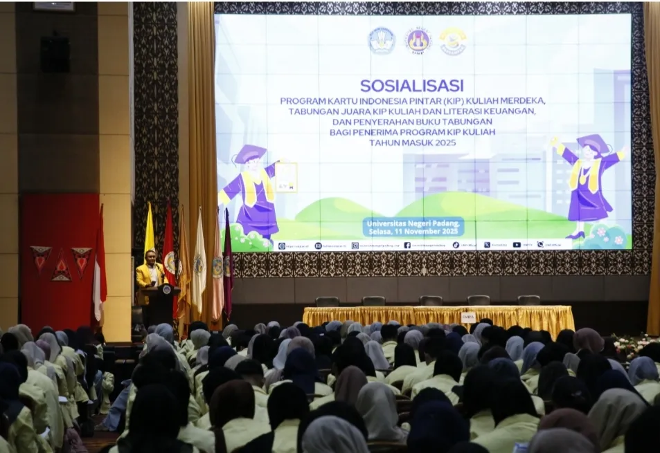 PADANG – Universitas Negeri Padang (UNP) kembali menunjukkan komitmennya dalam mendukung pemerataan pendidikan tinggi. Tahun ini, sebanyak 3.207 mahasiswa baru penerima Kartu Indonesia Pintar Kuliah (KIP-K) resmi menerima buku tabungan dari Bank Tabungan Negara (BTN).