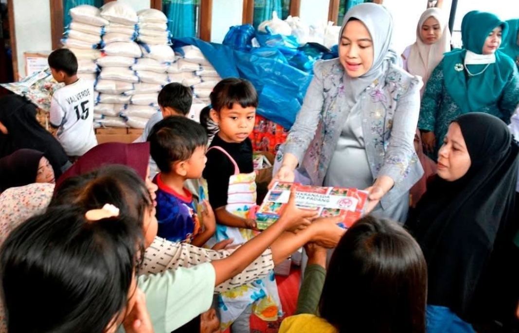 PADANG — Suasana Posko Bencana di Guo, Kecamatan Kuranji, tampak lebih hidup pada Rabu siang (3/12/2025). Tawa dan sorak anak-anak memenuhi area pengungsian saat Ketua Dekranasda Kota Padang, Ny. Dian Puspita Fadly Amran, datang membawa berbagai mainan untuk mereka.