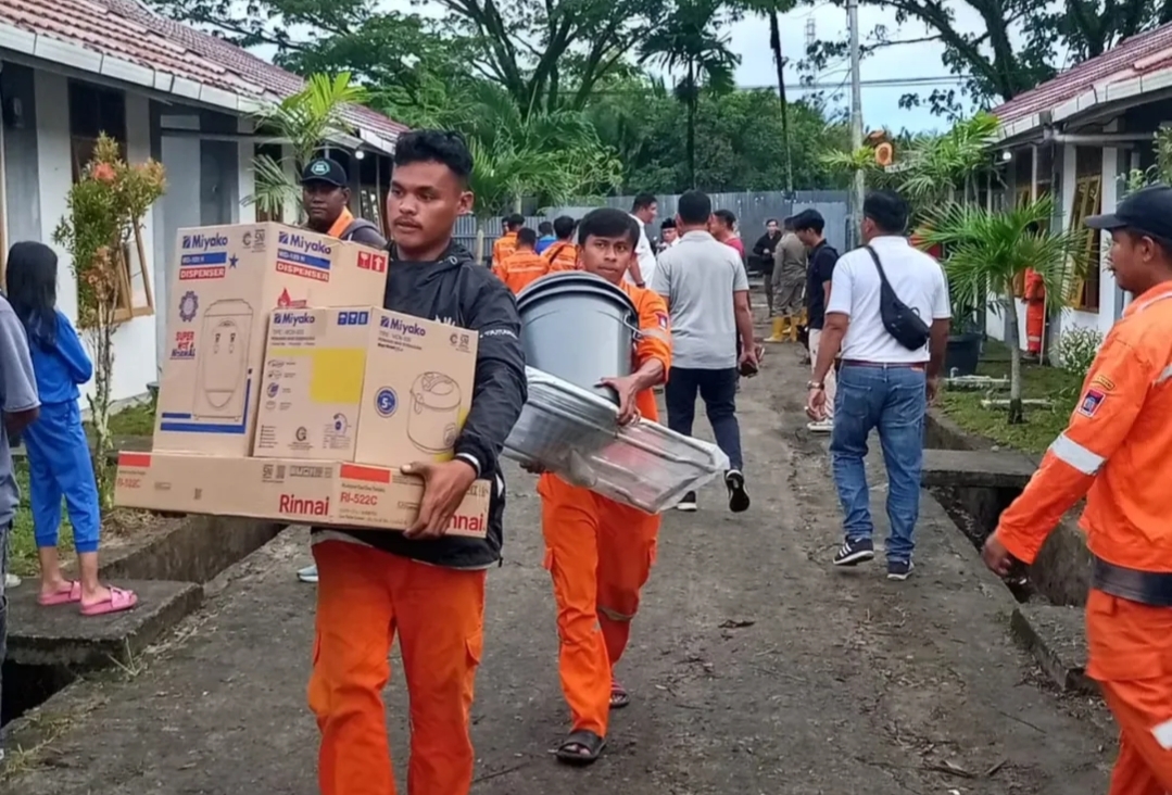Di tengah sisa lumpur dan puing yang masih memenuhi jalan-jalan kecil, petugas Satpol PP terlihat sibuk menyusuri gang dan sudut permukiman. Mereka juga membantu warga mengangkat pakaian, peralatan dapur, hingga kasur yang masih basah, sekaligus menuntun anak-anak dan lansia menuju armada yang sudah siaga.
