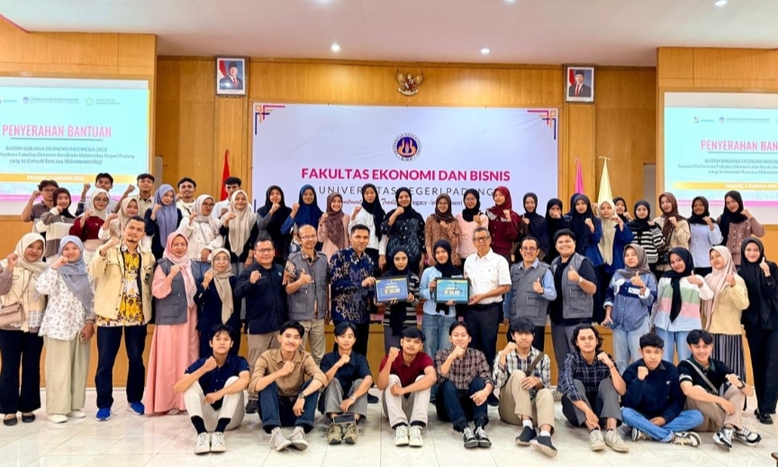 PADANG- Ikatan Sarjana Ekonomi Indonesia (ISEI) Padang bekerja sama dengan Dekan Fakultas Ekonomi dan Bisnis Universitas Negeri Padang (FEB UNP) salurkan bantuan kepada 80 mahasiswa yang terdampak bencana hidrometeorologi Sumbar.