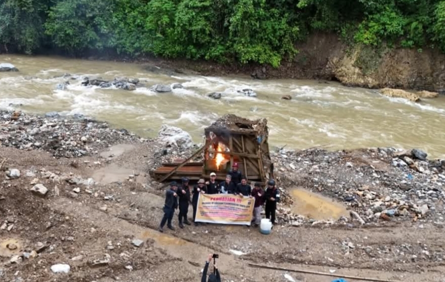 Sebagai langkah penegasan, petugas juga memasang garis polisi serta spanduk larangan di lokasi penambangan guna mencegah aktivitas serupa terulang.