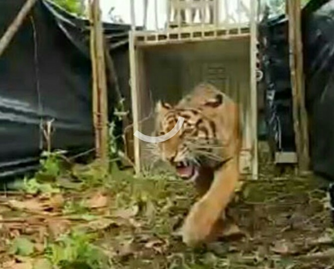 Si Raja Rimba penguasa hutan belantara itu, masuk ke dalam box trap atau kandang jebak pada Rabu 8 September 2021 sekira pukul 18.30 WIB.