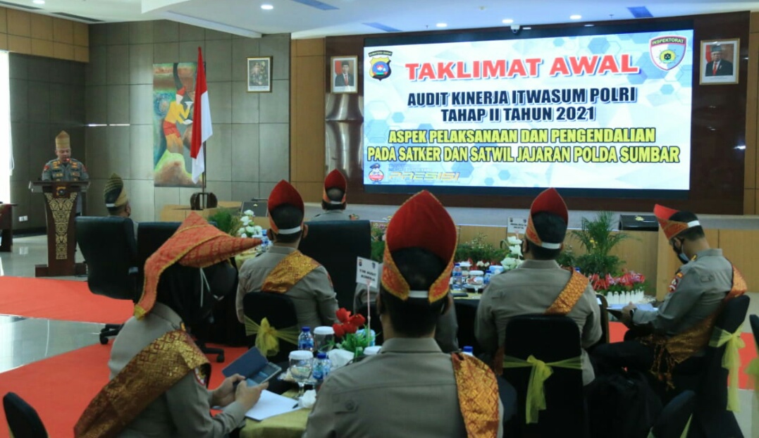 IWOSUMBAR.COM, PADANG- Kapolda Sumbar Irjen Pol Teddy Minahasa Putra, SH. S.Ik membuka Taklimat Awal Audit Kinerja Itwasum Polri tahap II tahun 2021, Rabu (15/9) di ruang Jenderal Hoegeng lantai IV Polda Sumbar.