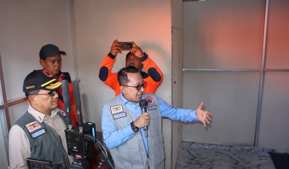 TANAH DATAR — Badan Nasional Penanggulangan Bencana (BNPB) meresmikan hunian sementara (huntara) bagi masyarakat terdampak bencana di Nagari Sumpur, Kecamatan Batipuh Selatan, Kabupaten Tanah Datar, Provinsi Sumatra Barat, Kamis (5/2/2026).