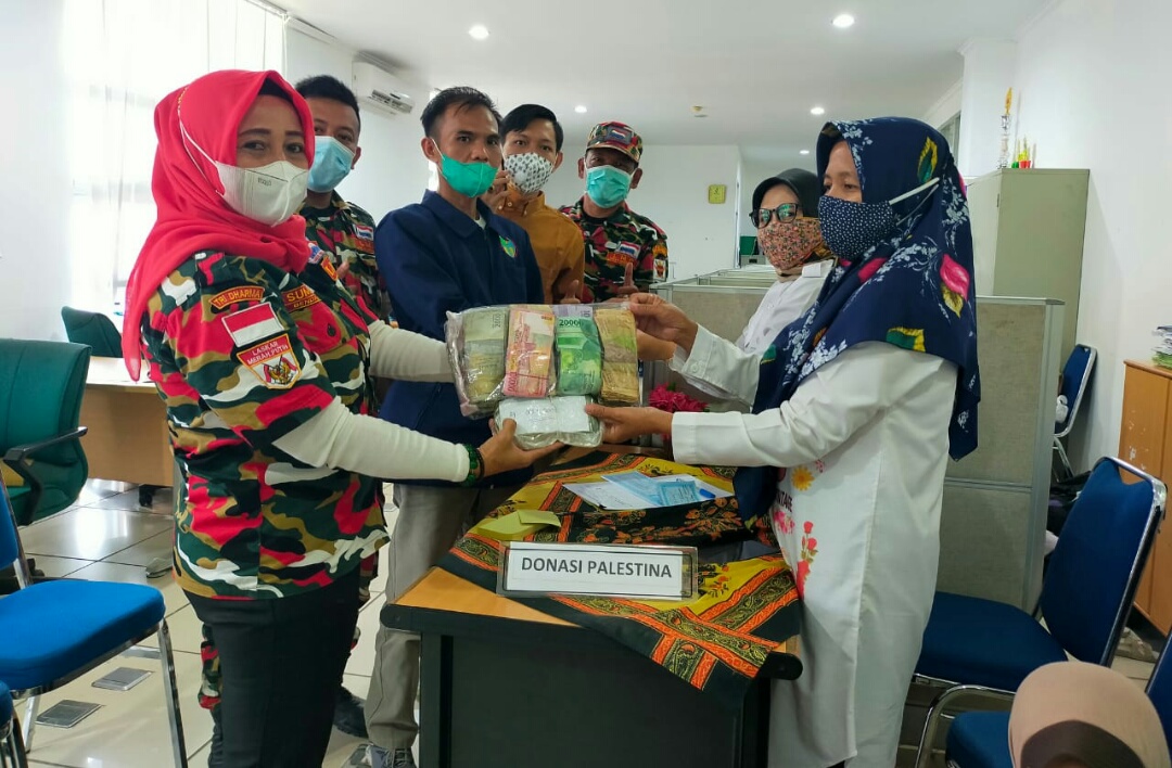 Penyerahaan Donasi Muba Peduli Palestina sebesar Rp.10.505.000,- di serahkan langsung oleh Bencab LMP Marcab Musi Banyuasin Ibu Sumarni Kodim bersama Bendahara PD IWO Muba Hasim. (rel iwo)